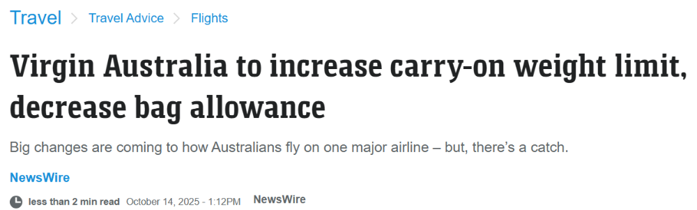 收藏注意!在澳洲坐飞机,随身行李重量和数量限制,有变!