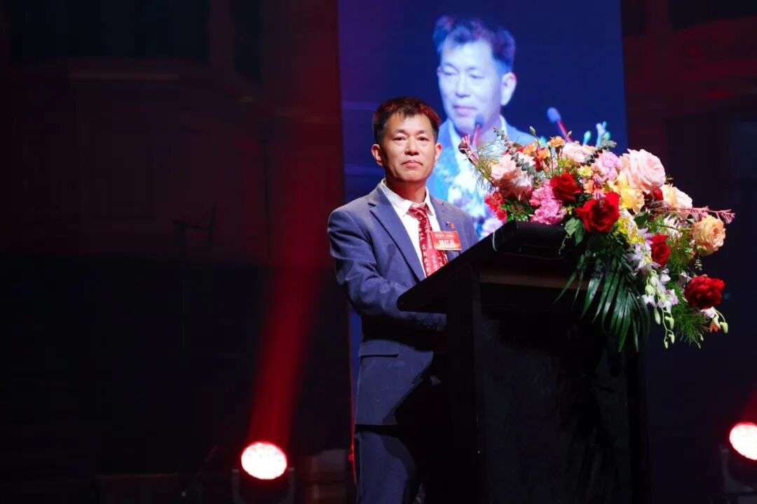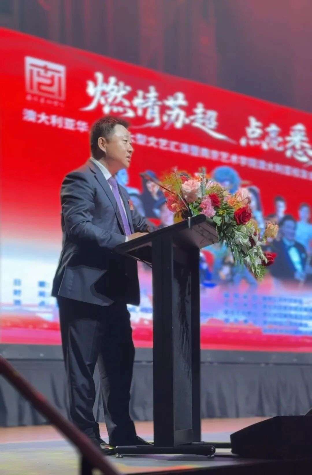 澳大利亚江苏总商会会长许浚中英双语发言,鼓励在澳江苏人团结一致,发扬苏超精神,传承江苏人敢为天下先的优良品质;