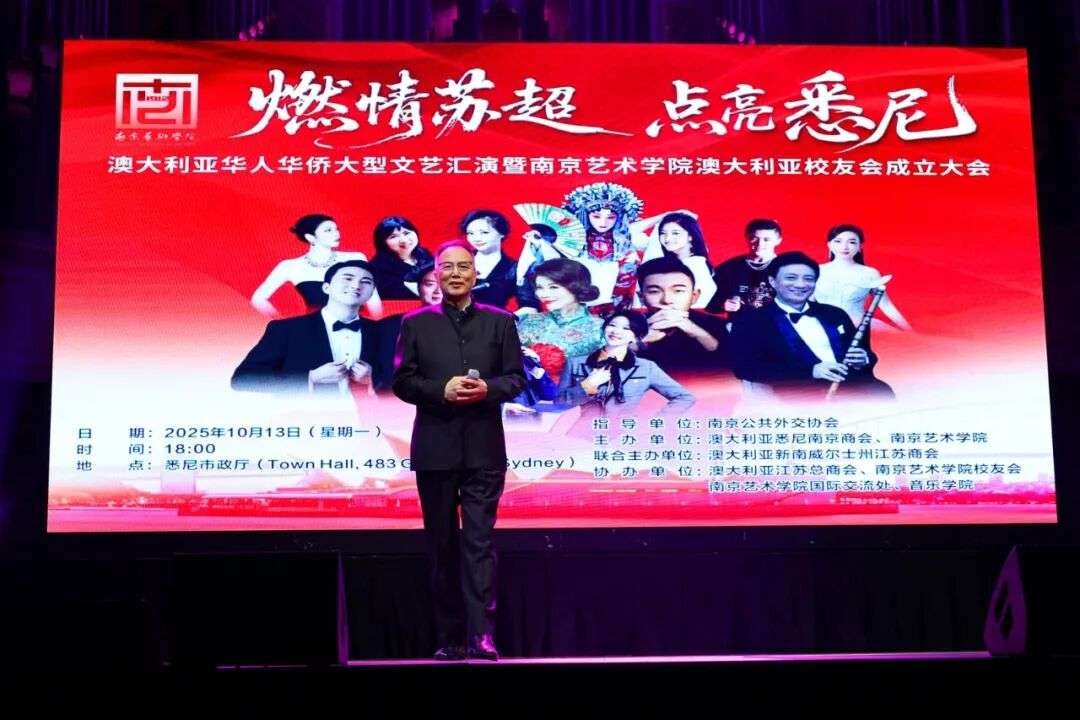 由澳大利亚悉尼南京商会与南京艺术学院联合主办、澳大利亚新南威尔士州江苏商会协办、澳洲新媒体学院承办的“燃情苏超·点亮悉尼—大型文艺汇演暨南京艺术学院澳大利亚校友会成立大会”在万众瞩目中圆满落幕。
