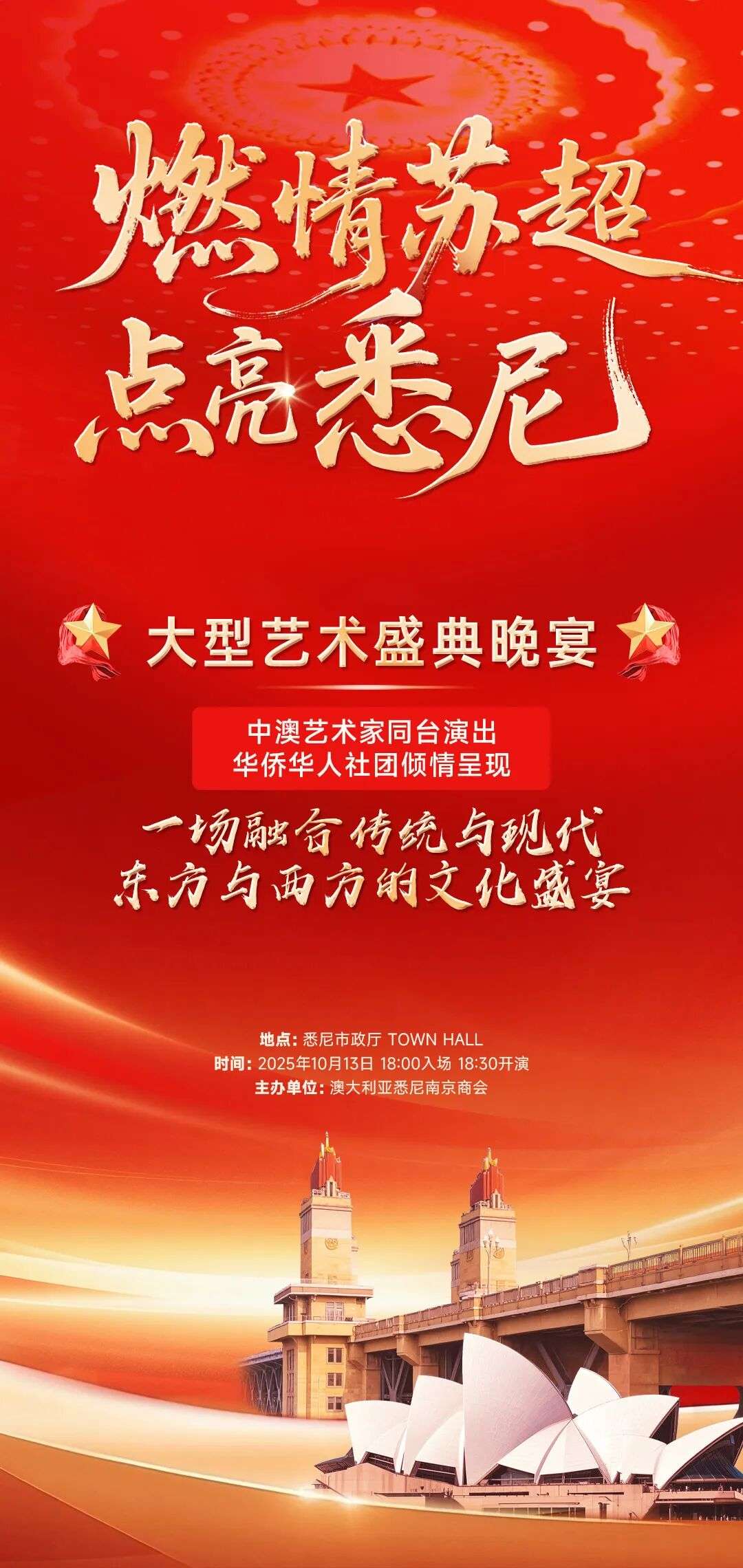 “燃情苏超·点亮悉尼”不仅是一场演出,它更像是一面旗帜—代表着江苏人的坚韧、华人的团结、文化的力量。