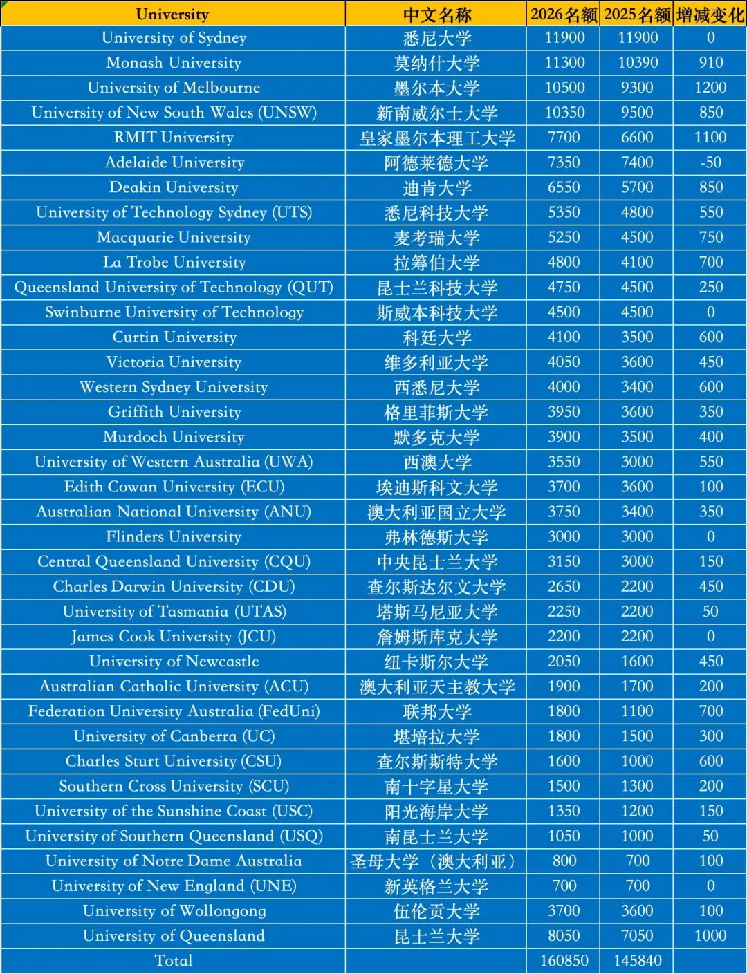 收藏悉尼大学被限制扩招!2026留学生配额公布,澳洲留学生申请狂降26%!