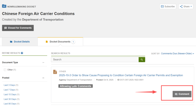 https://www.regulations.gov/docket/DOT-OST-2025-1822/document