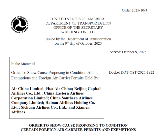 最新消息,美国交通部突然发布一份《2025-10-3》号令,“建议”中国7家航空公司在执行中美航班时不得使用俄罗斯领空,引发业内震动和网友热议,也迅速登上各个社媒热搜。