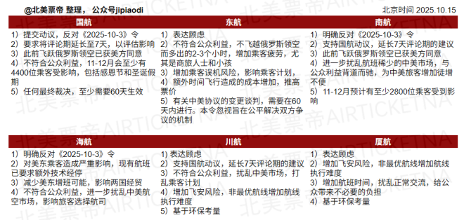 截至目前,国航、东航、南航、海航、厦航、川航等6家中方航司已提交正式反对意见,认为该命令: