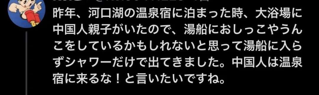 “去年我在河口湖温泉看到一对中国父子,害怕他们当场小便,我直接没下池。”