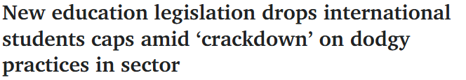 新一版《教育立法修正案(诚信与其他措施)》已于本月提交议会,重点转向“打击不良行为”,而非“限制增长”。