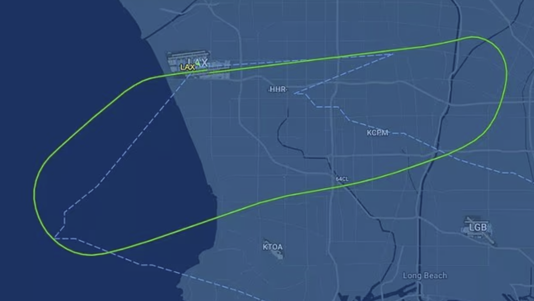 根据飞行追踪网站FlightRadar24的数据,飞机在加州南部空域盘旋回转了约20分钟后,才安全返航洛杉矶机场。