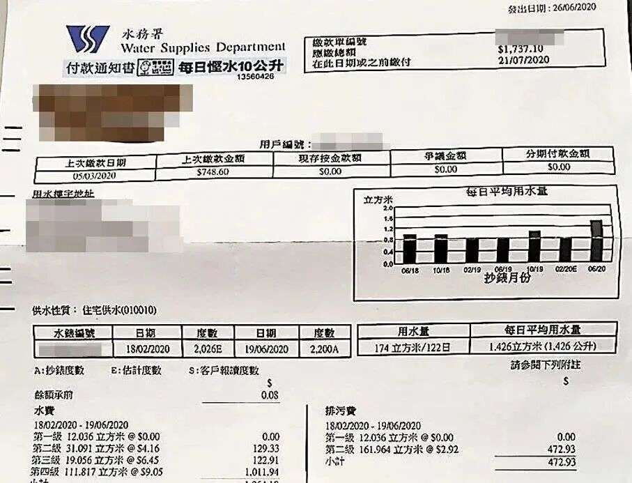 她向入境处递交了两份住址证明:一份水费账单、一份电费账单,用于佐证自己在港居住。