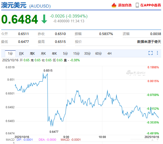 澳元则一度获得支撑,短暂回升至 0.65 美元附近。