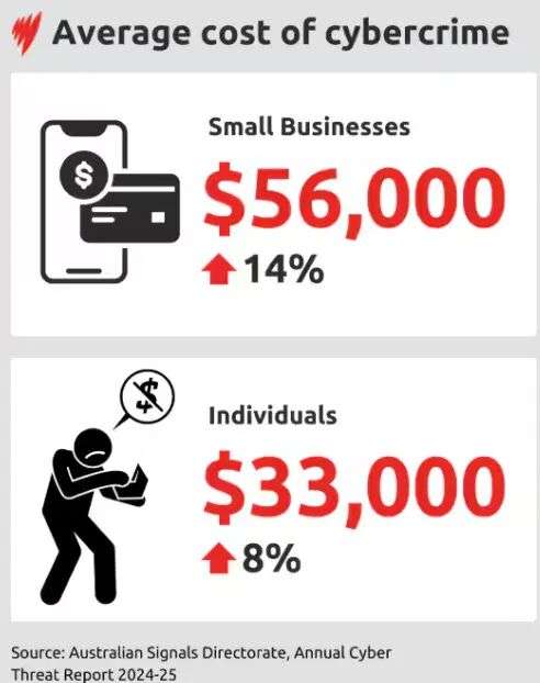 过去一年,由于遭遇网络犯罪,澳大利亚各地受害者的平均损失为 3.3万澳元,增幅达8%。