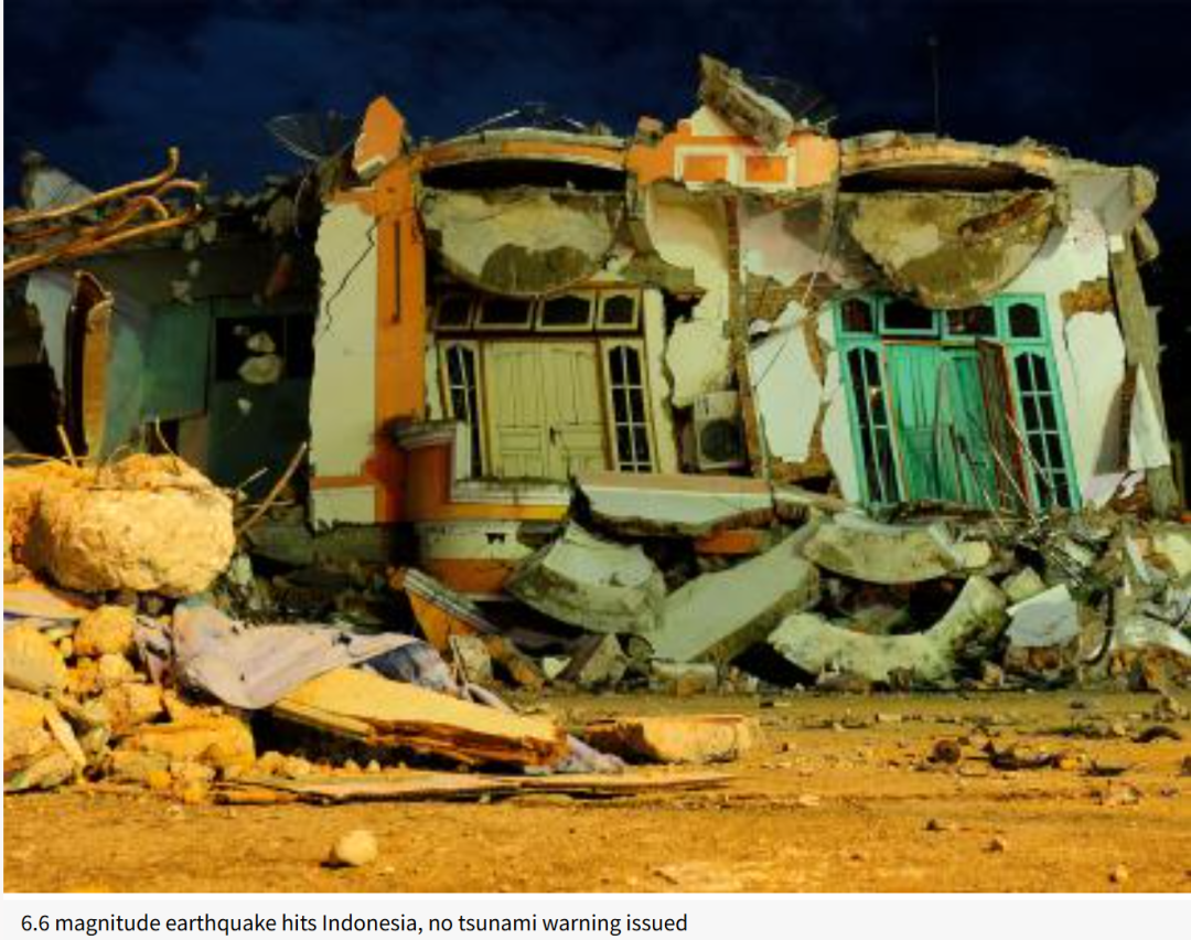 印度尼西亚国家地震中心(NCS)测定结果为6.6级,而美国地质调查局(USGS)报告称,这次地震震级为6.7级,震源深度在55到70公里之间。