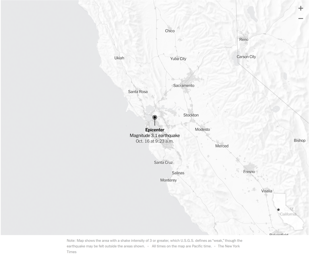 伯克利、旧金山、圣罗莎、奥克兰、康科德和海沃德的居民纷纷报告感受到了震感。有人说像是被突然推了一把,有人说家里的东西晃了几下。
