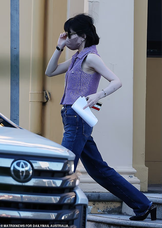 澳媒拍到一次她前往Rose Bay警局报到以后的身影,她的上身穿着一件价值1.6万澳币的Chanel紫色马甲,手上佩戴的是价值5.4万澳币的复古白金Van Cleef & Arpels手链。