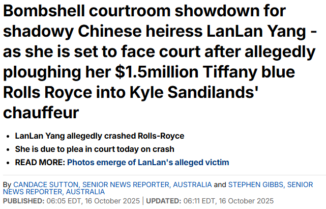 但是她本人只是定期前往Rose Bay警局报到,保释似乎对她的生活没有其他影响,每一次现身警局,衣着都十分奢华,浑身都是奢侈品。
