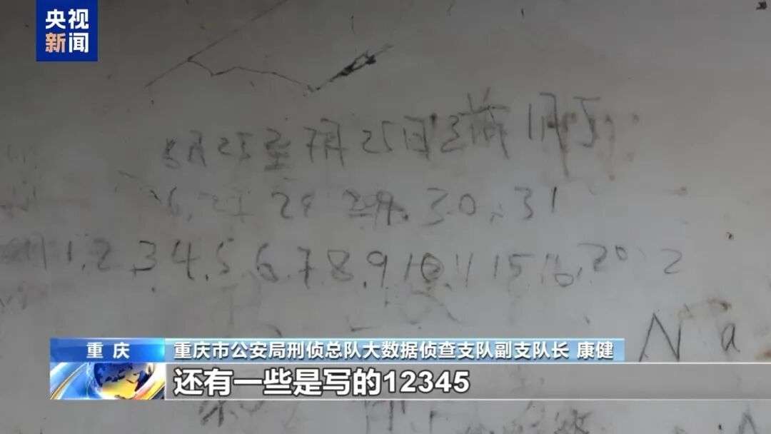 重庆市公安局刑侦总队大数据侦查支队副支队长 康健:小黑屋的墙上画了很多正字,画一笔就代表关了一天了,画了一排一排的,还有一些是写的12345,我看到有一面墙上他已经写到了31了,又开始起新的一个月了。很震撼,我们中国公民在那边受到这种境遇,让我也很痛心。