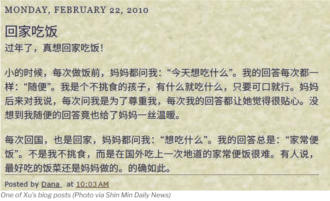 在一篇文章中,她提到:“春节那天我一个人煮面条,闻到香气时忽然想起妈妈的汤。”