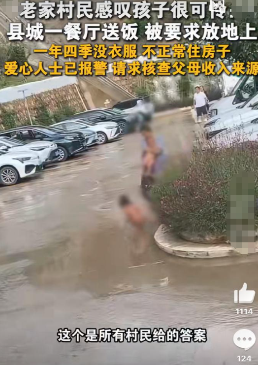 县城一家餐厅的老板也曾见过这家人,当时她看男童可怜,想给孩子送点热饭,可孩子父亲却不让她靠近,只让她把饭放在地上,接着就看到男童和家里的狗一起趴在地上抢着吃。