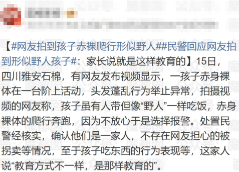 看到这起“野人小孩”事件,相信很多人都和表姐一样,心里满是疑惑和愤怒。