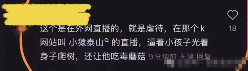 视频内容十分离谱,不仅有逼迫男童爬树的画面,甚至还有让孩子吃毒蘑菇的片段。