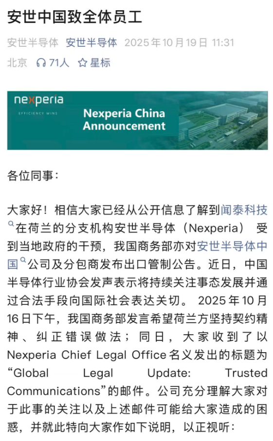 闻泰科技立刻发布官方通告:虽然公司子公司遭到荷兰政府的干涉被强行接管,但是中国安世的运营不受任何影响!