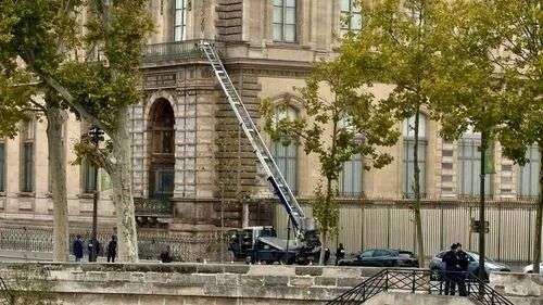 法媒报道称,犯罪团伙在现场至少有4人:两名身穿黄色安全背心、假扮工人的男子操作升降平台进入,另外两人则各骑一辆小型摩托车负责接应。