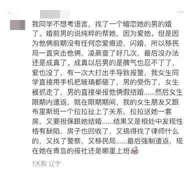 有网友说,她同学为了不考语言,直接找了一个暗恋她的男的闪婚。