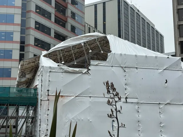 惠灵顿市区风力强劲,街道上树枝、垃圾桶和招牌被吹得到处都是,消防部门和警方不断接警。
