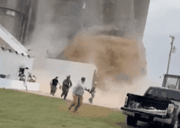 存满大豆的谷仓倒塌瞬间,人们四处逃散。 社交媒体