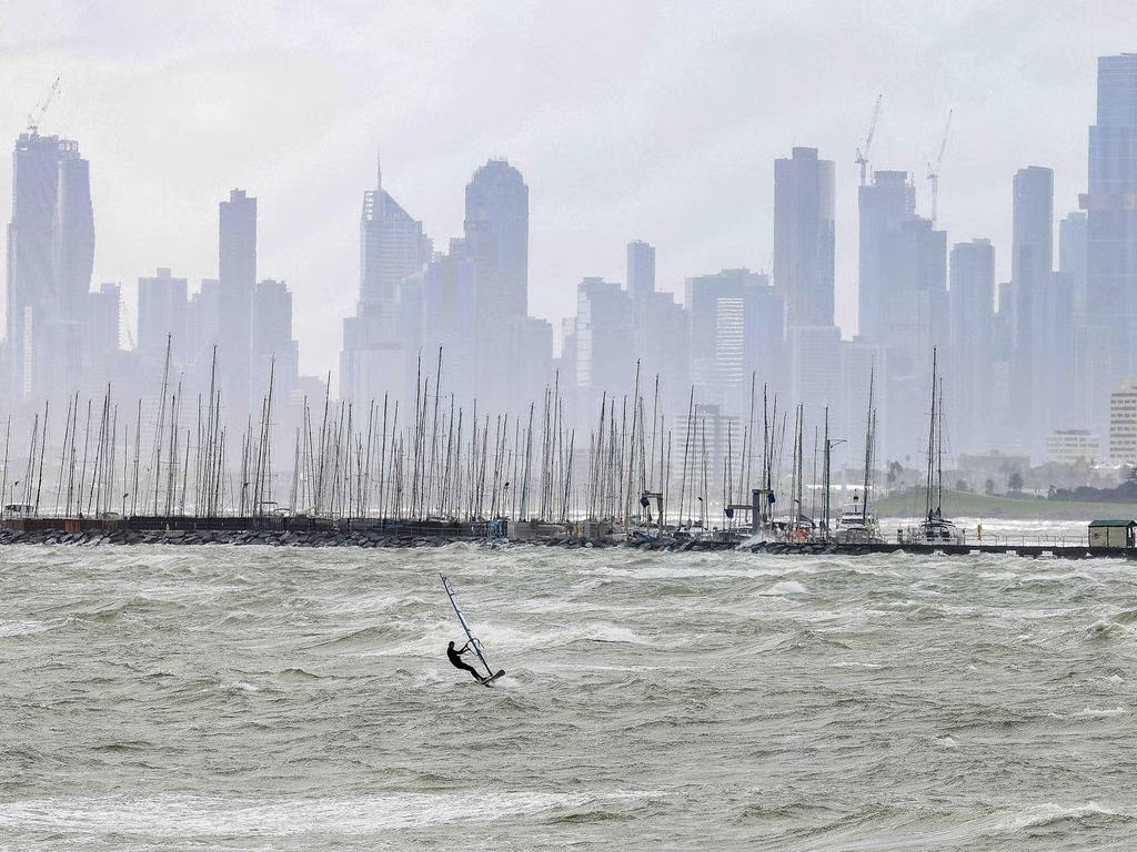 与此同时,墨尔本则出现时速达到100km/h的大风。