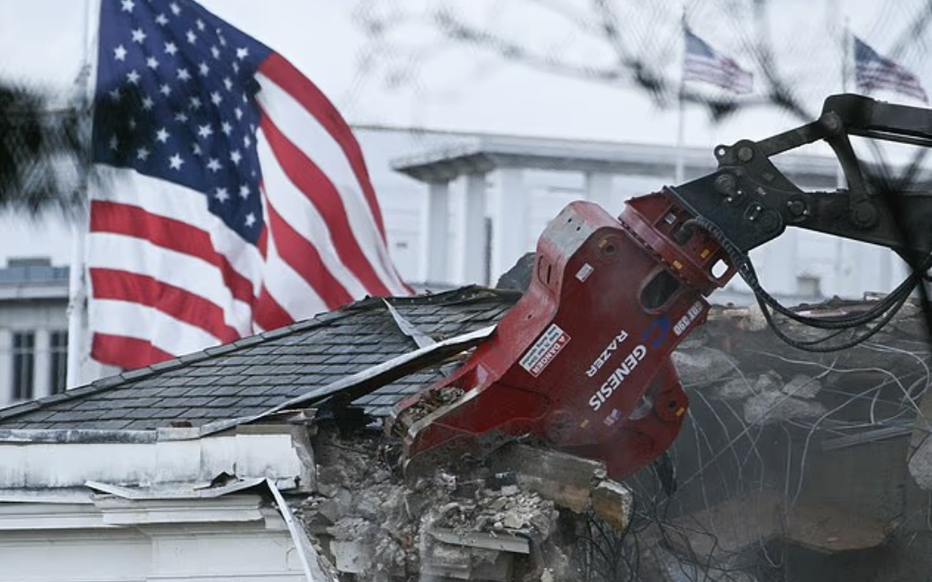 就在今天,发生在美国白宫内的一幕震惊了所有人。一个拆迁队正在如火如荼的进行施工,推土机已经将白宫东翼这座已经有83年的建筑砸的面目全非。