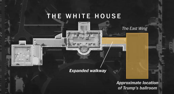 空出的区域将兴建特朗普筹划中的巨型新舞厅。