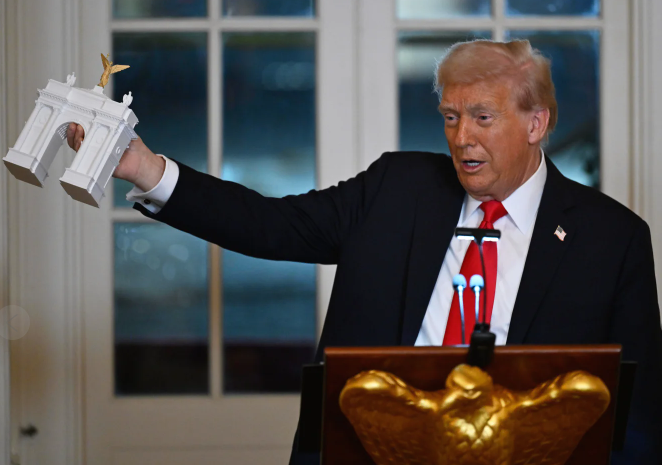 特朗普直接监督舞厅的设计与施工,明确要求“体现美国的辉煌与金色精神”,使用金色装饰线条、白色大理石墙面和水晶吊灯。