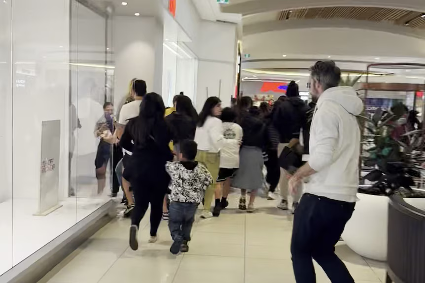 购物中心内的工作人员和顾客们四散奔逃,惊慌失措。
