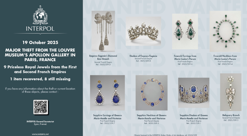 目前,法国司法机关与欧洲刑警组织正在合作追踪窃贼,同时调查是否存在有组织犯罪背景。警方提醒,在盗窃发生后 24–48 小时内是追回这些珠宝的关键窗口期,否则珠宝可能被拆解、熔化或重切宝石,难以回收。