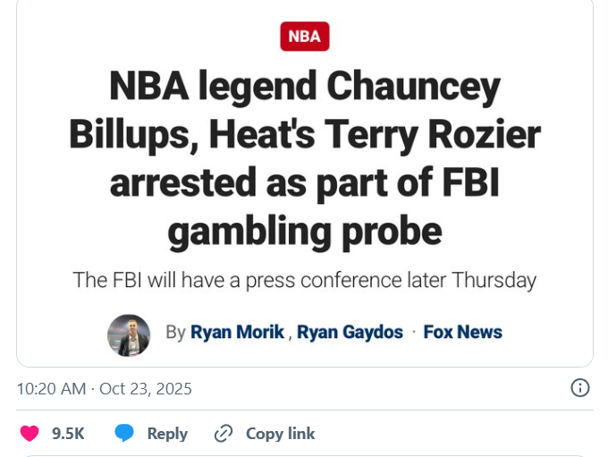10月23日上午10点,联邦调查局(FBI)在纽约召开紧急记者会,宣布起诉30多名涉案人士——其中竟包括波特兰开拓者主教练、名人堂球星昌西·比拉普斯(Chauncey Billups)以及迈阿密热火队后卫特里·罗齐尔(Terry Rozier)。