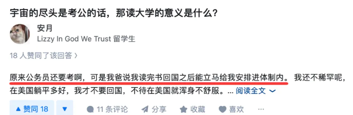 国内很多人挤破头都想要考取的公务员,这位名叫安月的博主表示自己回国就能安排,根本不用考。