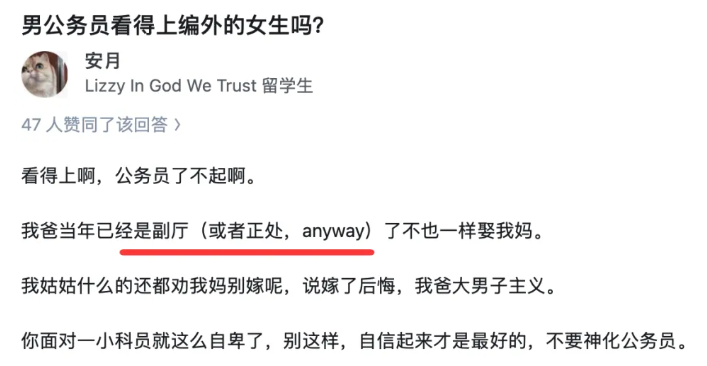 至于她的父亲是什么级别,她在帖子里也写了,当年在他父母结婚的时候,父亲已经是副厅级别了。现在什么级别虽然没说,但应该不低。