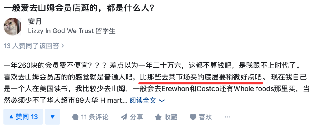 而且她还说了,去山姆超市买东西的,是普通人,比去菜市场买菜的底层人好一点: