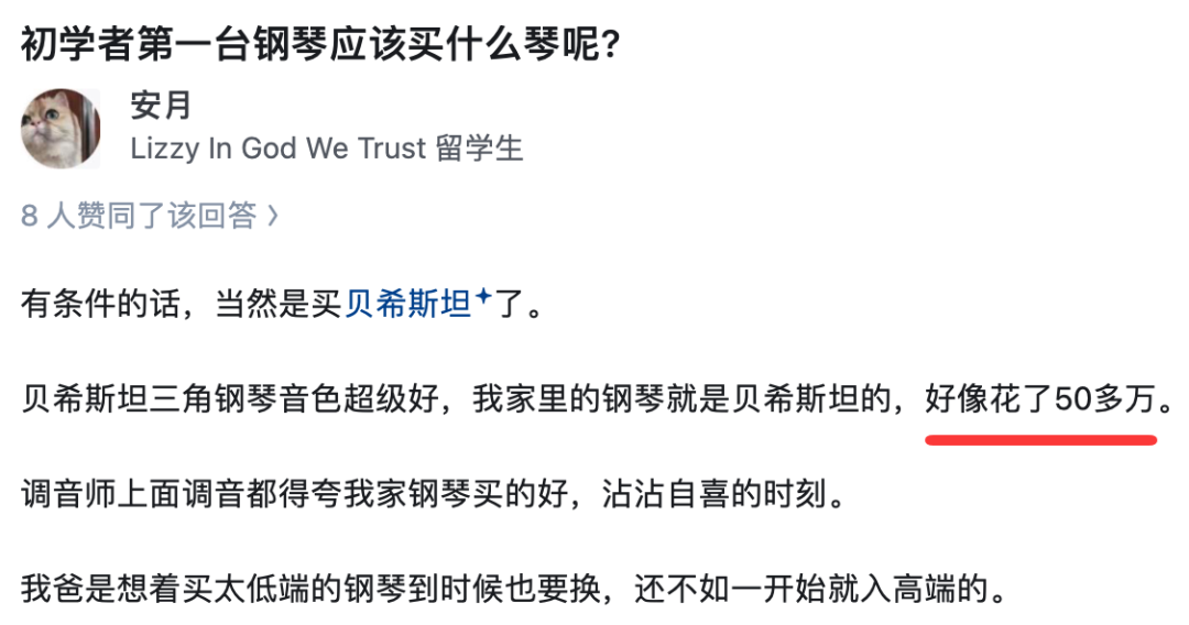 关于初学者要买什么钢琴,她说买一台50万左右的就行: