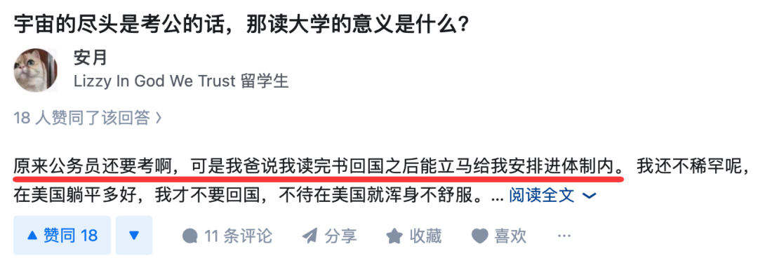 这位所谓的女留学生表示,她自己并不知道公务员还要考,她说她爸爸告诉她,读完书后回国,就能立马给她安排进体制里。