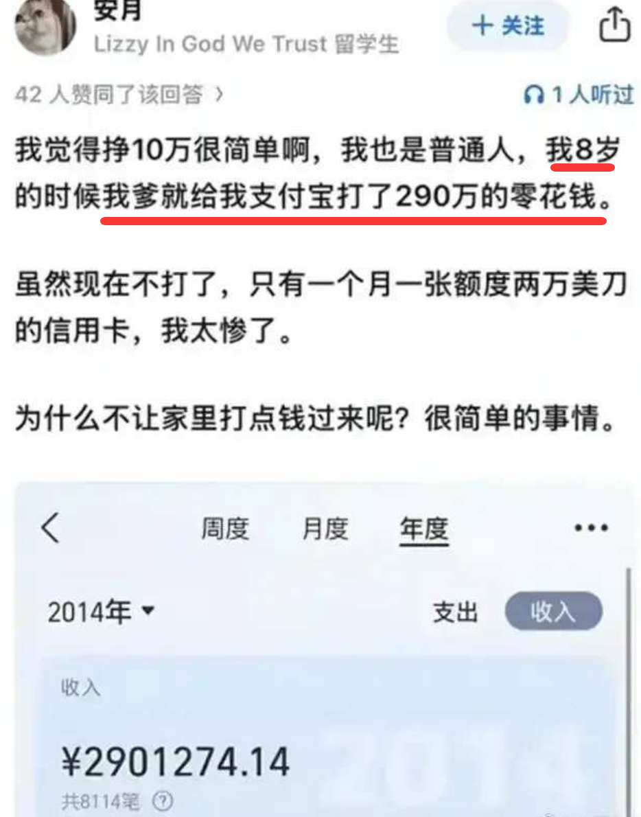 收藏又一条"北极鲶鱼"? 女留学生疯狂炫富, 8岁时就有290万零花钱! 透露父亲身份