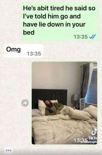 最后孩子贴心地请感到劳累的流浪汉在妈妈床上躺一会儿,