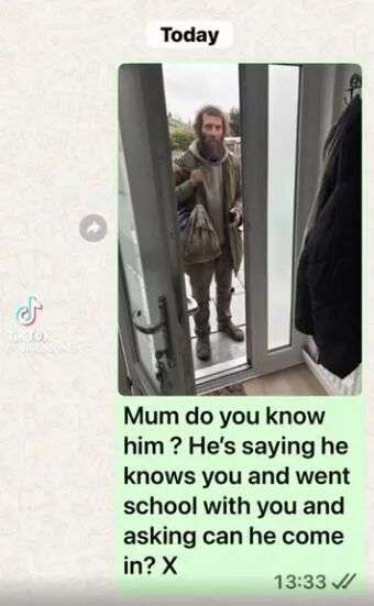 “妈妈,你认识这个人不?他说他认识你,是你老同学,他想来咱家待会儿。”