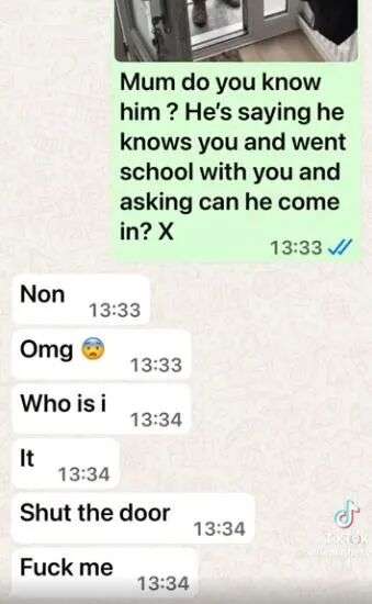 吓得妈妈赶紧打来视频电话,发现女儿没接后,又留了很长一段言,让女儿小心,赶紧离开家里。