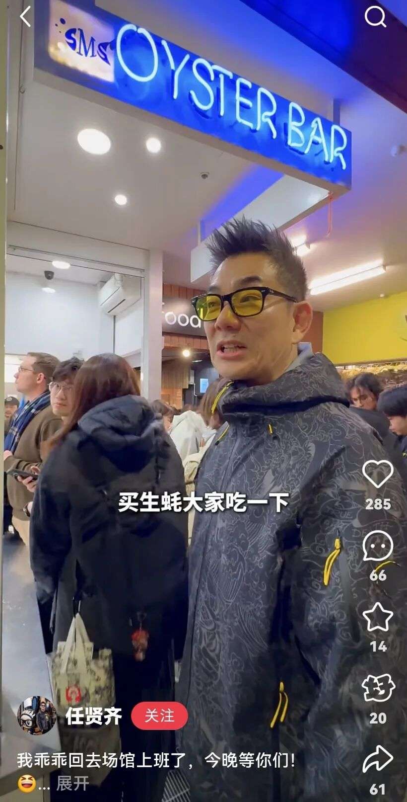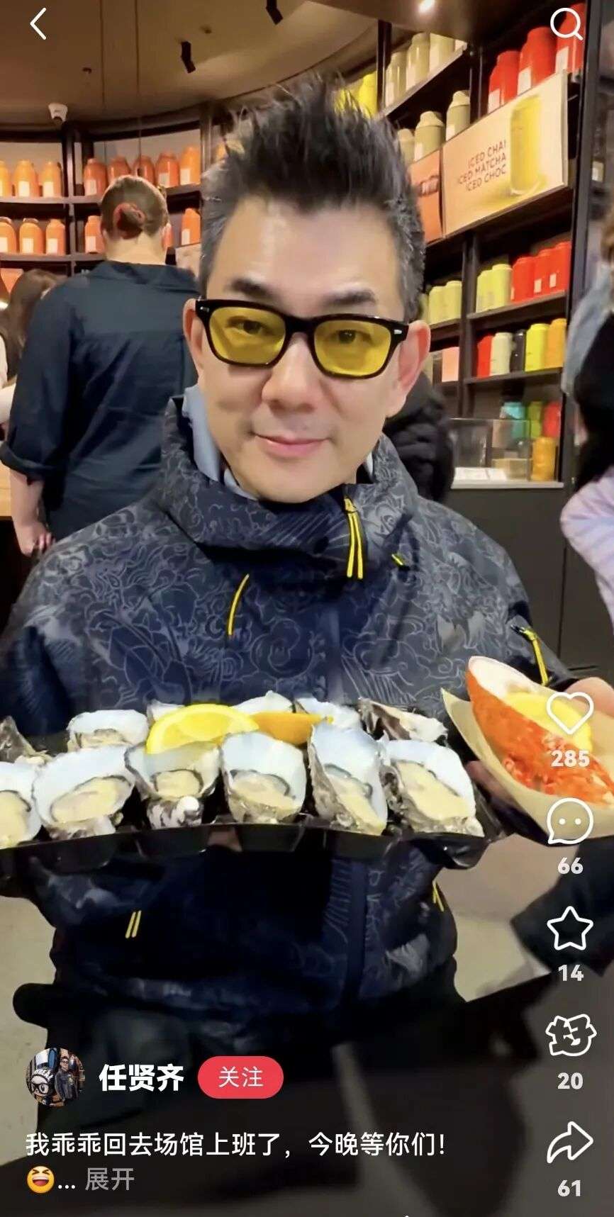 连任贤齐也无法拒绝澳洲美味的生蚝和龙虾,冒雨也要去吃。预祝今晚演唱会顺利,大家都能玩的开心!