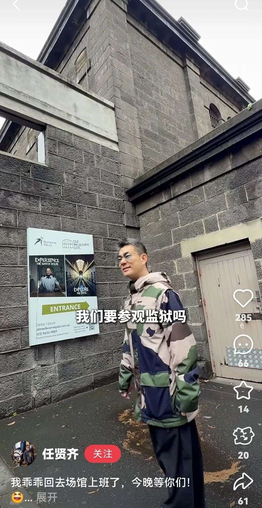 就在刚刚,任贤齐本人也发出了墨尔本旅游的vlog,原来在去南墨尔本市场之前,他还参观了旧墨尔本监狱,直呼:要做个好人!