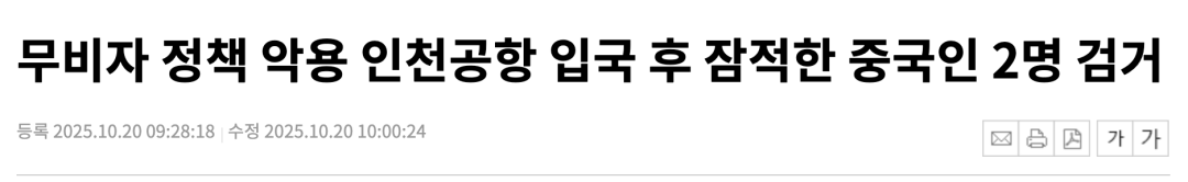 仁川出入境管理局表示,这两名中国游客滥用免签政策,以旅游为幌子入境,并试图借助同胞网络进行非法就业。