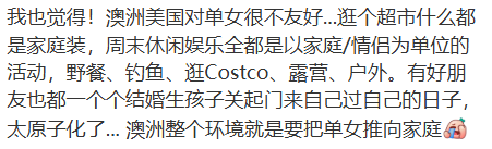 评论区里有不少单身的澳洲华人附和,不仅是在住房上面,在生活的方方面面,澳洲对单身人士都很不友好!