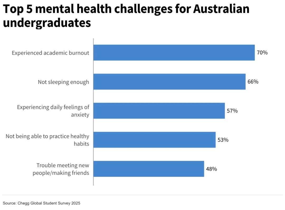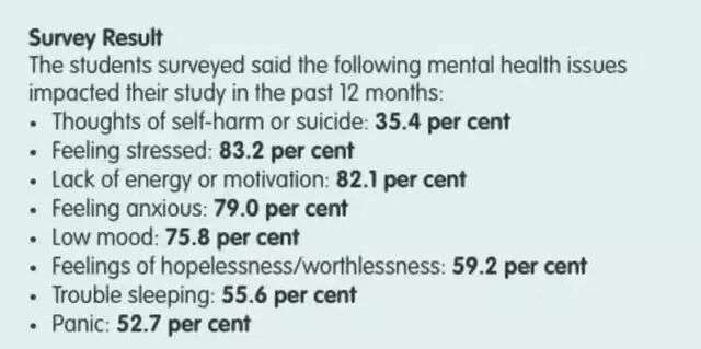 有66%的澳大利亚大学生表示自己睡眠不足,56%的人每天都面临焦虑,53%的人觉得自己无法养成健康的习惯。