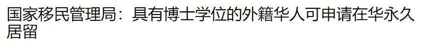 此前,中国国家移民管理局就在官方公众号上解答了外籍华人博士在华申请永久居留的疑问。